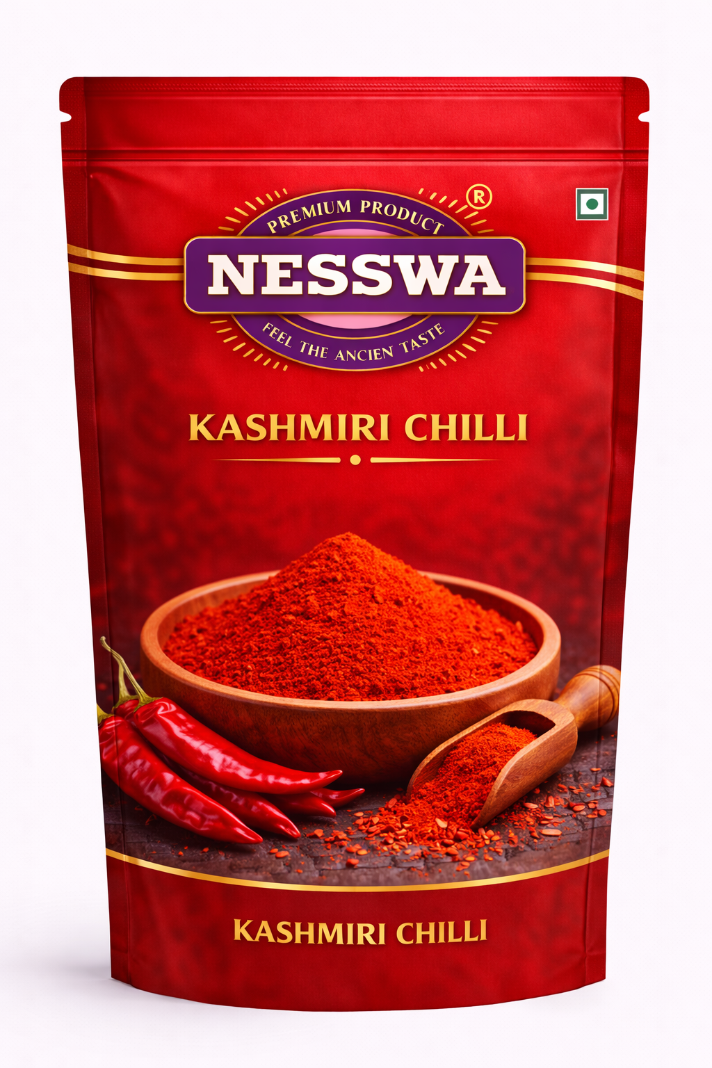 Carefully dried and finely ground using hygienic processes, Kashmiri Chilli retains its natural oils, color, and taste. It is widely used in Indian gravies, curries, biryanis, tandoori dishes, and marinades to achieve the signature rich red appearance.