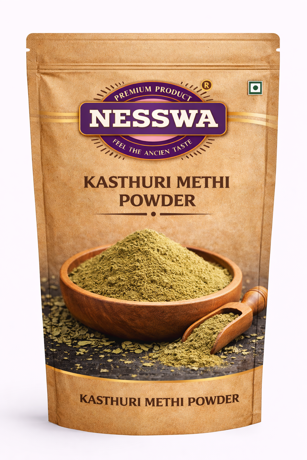Our Kasthuri Methi Powder is prepared from carefully selected fenugreek leaves that are dried and finely powdered to preserve their natural aroma and flavor. Widely used in North Indian and traditional recipes, it adds a unique slightly bitter yet aromatic taste to curries, gravies, paneer dishes, and vegetable preparations. Even a small amount enhances the overall flavor, making dishes more rich and authentic.