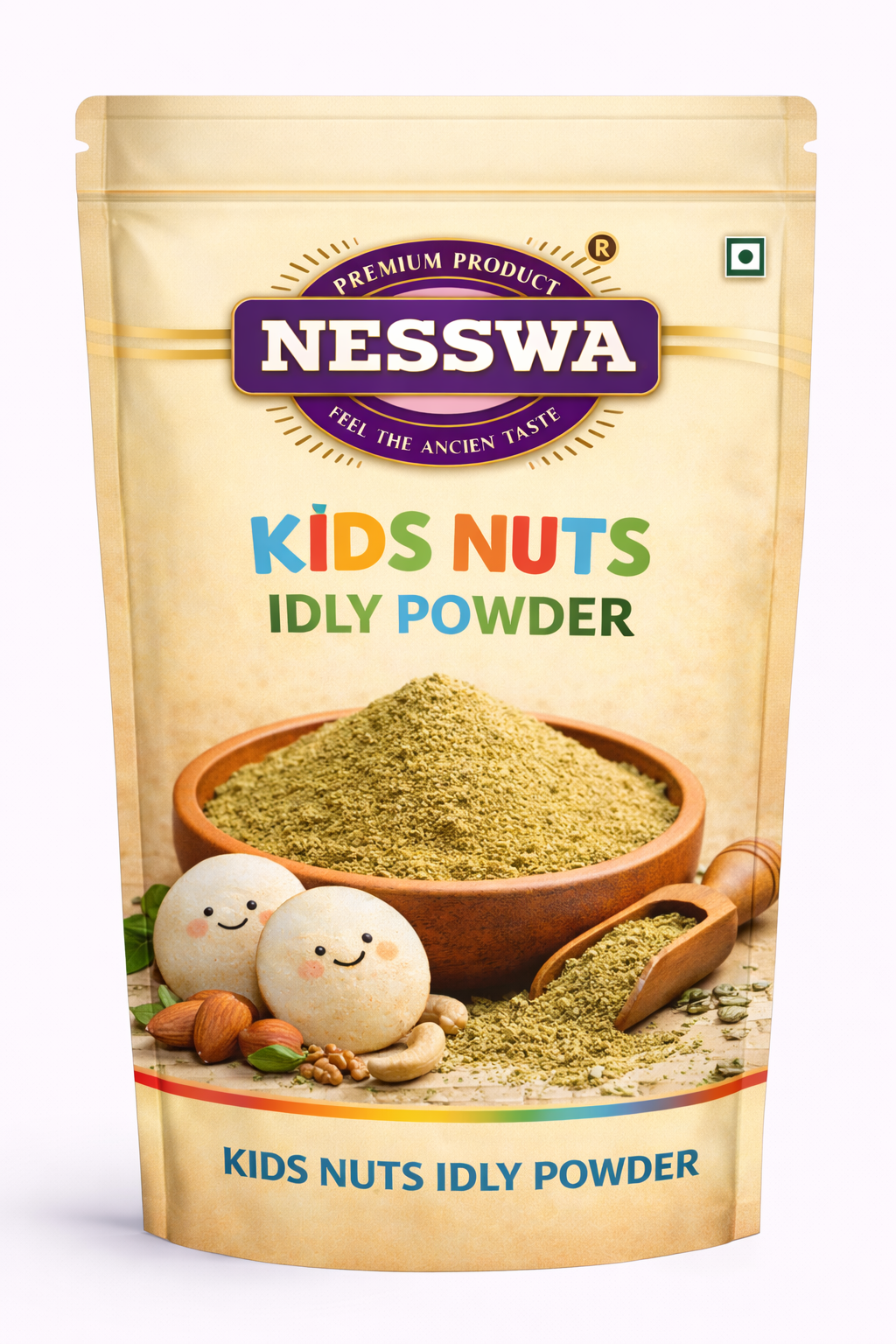 Our Kids Nuts Idly Powder is a wholesome blend of carefully selected nuts and mild spices, roasted and ground to create a gentle, kid-friendly flavour. Perfect for children’s breakfast, it adds nutrition, taste, and aroma to idly, dosa, or porridge without being too spicy. Free from artificial additives and preservatives, this powder provides a healthy and tasty option for everyday meals, making it ideal for growing kids and family-friendly cooking.