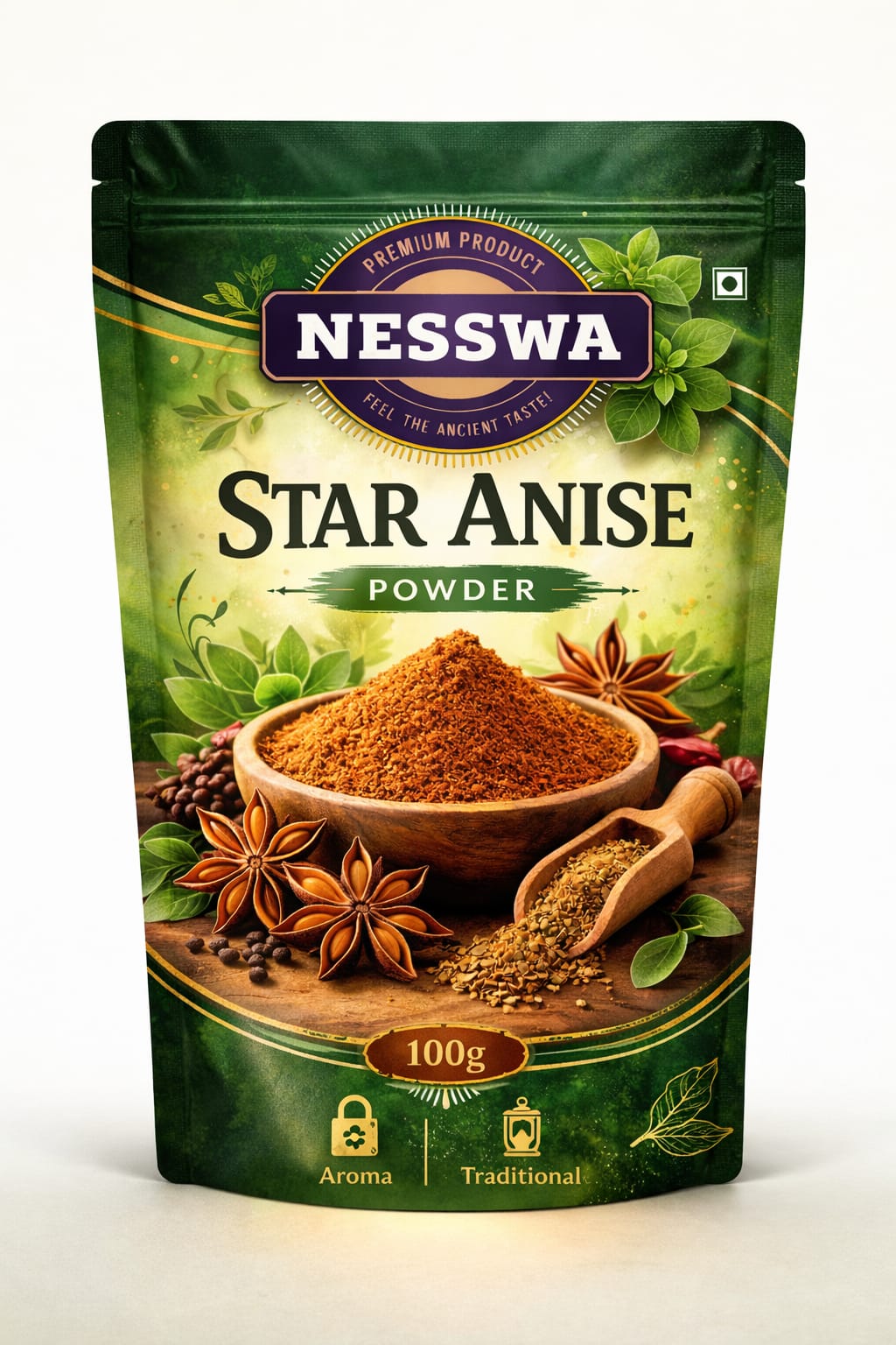 Our Star Anise Powder is made from carefully sourced whole star anise pods, finely ground to retain their natural aroma and distinctive flavor. Known for its sweet and warm taste with subtle licorice notes, it is commonly used in biryanis, curries, spice blends, and beverages. This spice adds depth and complexity to dishes, making it an essential ingredient in many regional and international cuisines.