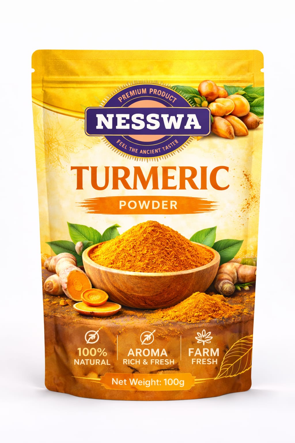 Finely ground and hygienically processed, it retains its natural curcumin content—giving you rich colour, authentic taste, and traditional purity in every spoon.